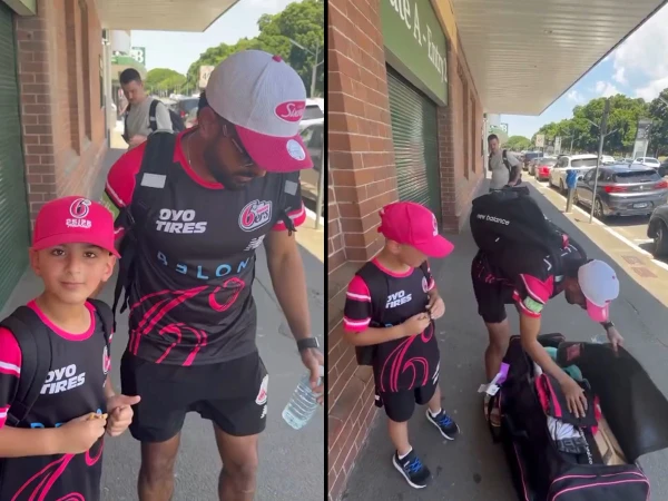 سڈنی (کنزیومرواچ نیوز)قومی کرکٹ ٹیم کے اسٹار بلے باز بابر اعظم ان دنوں آسٹریلیا میں جاری بگ بیش لیگ کے دوران سڈنی سکسرز کی نمائندگی کررہے ہیں۔اسٹار بیٹر نہ صرف اپنی بلے بازی بلکہ اپنی خوش اخلاقی کی وجہ سے بھی جانے جاتے ہیں۔ حال ہی میں بابر اعظم نے ایک بار پھر اپنے اخلاق اور شائستگی سے مداحوں کے دل جیت لیے۔سوشل میڈیا پر ایک ویڈیو وائرل ہورہی ہے جس میں دیکھا جاسکتا ہے کہ سڈنی سکسرز کی جرسی پہنے بابر اعظم اپنے کِٹ بیگز کے ہمراہ گراؤنڈ سے باہر کسی جگہ موجود ہیں۔بابر اعظم کے پاس ان کا ایک ننھا فین تصویر کھنچوانے آتا ہے تو بابر اس کو تحفے میں اپنے بیٹنگ گلوز دے دیتے ہیں۔اس دوران ویڈیو بنانے والا شخص بابر سے کہتا ہے بچے کو کوئی بیٹنگ ٹپس دے دیں۔ جس پر بابر اعظم کو کہتے سنا جاسکتا ہے کہ بچے کو ابھی ٹپس کی ضرورت نہیں، بس بیٹنگ انجوائے کرے۔بابر اعظم سے خاص تحفہ وصول کرنے پر ننھے فین کا چہرہ خوشی سے کھل اٹھتا ہے۔واقعے کی ویڈیو سوشل میڈیا پر وائرل ہو گئی اور مداحوں نے بابر اعظم کے اس عمل کو ان کی عاجزی اور مداحوں سے محبت کا ثبوت قرار دیا۔