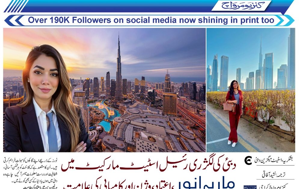 دبئی ، چمکتی روشنیوں، جدید طرزِ زندگی اور شاندار عمارتوں سے مزین خوابوں کا شہر، لیکن اس شہر کے چمکتے افق کے پیچھے کچھ ایسی شخصیات بھی ہیں جنہوں نے اپنی محنت، وژن اور لگن سے اپنا الگ مقام بنایا ہے۔ انہی میں ایک نام ماریہ انور کا بھی ہے جو آج دبئی کی لگژری رئیل اسٹیٹ مارکیٹ میں اعتماد، شفافیت اور کامیابی کی پہچان بن چکا ہے۔ماریہ کی والدہ عینی انور ایک بہترین رائٹر ہیں ان کو قلم پربھرپور گرفت حاصل ہے وہ معاشرے کے جیتے جاگتے کرداروں کو اپنی کہانیوں میں لڑی کی طرح پروتی ہیں ماریہ انور بھی عینی انور کے نقش قدم پر چلتے ہوئے اپنی فیلڈ میں کامیابیاں حاصل کر رہی ہیں