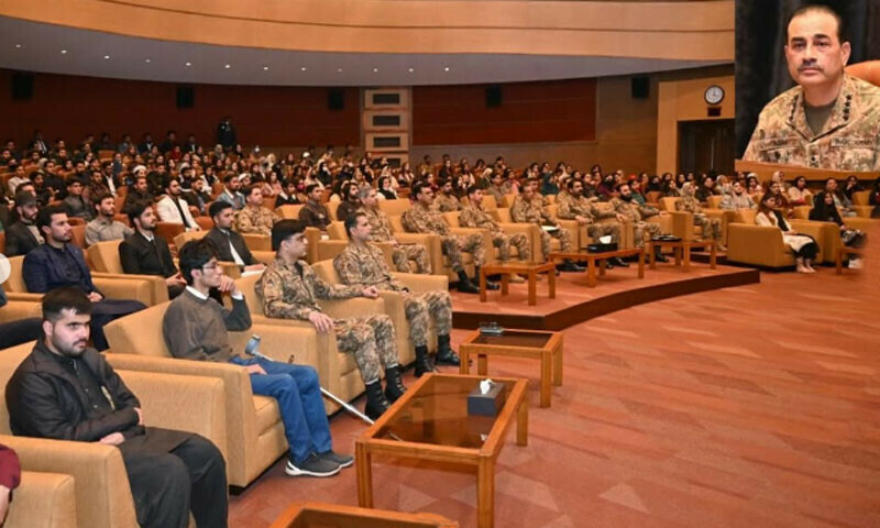 پاک فوج کے سپہ سالار جنرل عاصم منیر نے کہا ہے کہ پاکستانی عوام خصوصاً نوجوانوں کا پاک فوج سے انتہائی مضبوط رشتہ ہے، ملک دشمن عناصر کی فوج اور عوام میں خلیج ڈالنے کی کوشش ہمیشہ ناکام رہے گی۔پاک فوج کے شعبہ تعلقات عامہ (آئی ایس پی آر) کی جانب سے جاری بیان کے مطابق آرمی چیف جنرل عاصم منیر نے مختلف یونیورسٹیز اور کالجز کے طلبہ سے خطاب کے دوران نوجوانوں کی توانائی، تخلیقی صلاحیت اور اختراعی صلاحیتوں کی تعریف کی۔ترجمان پاک فوج کے مطابق آرمی چیف نے طلبہ سے خطاب کے دوران پاکستان پر بیرونی ماحول کے اثرات خصوصاً سرحد پار سے دہشت گردی کے خطرات پر بھی اپنے خیالات کا اظہار کیا۔پاک فوج کے سربراہ نے نوجوانوں کو پاکستانیت کا جذبہ اپنانے کی تلقین کرتے ہوئے کہا کہ نوجوان اپنی تعلیم پر خصوصی توجہ دے کر ملکی ترقی میں کردار ادا کریں۔ترجمان پاک فوج کے مطابق جنرل عاصم منیر نے نوجوانوں کی توانائی، تخلیقی صلاحیتوں اور جدت پسندی کی صلاحیت کو سراہتے ہوئے کہا کہ ہمارے نوجوان پاکستان کے مستقبل کے رہنما ہیں۔آئی ایس پی آر کا کہنا تھا کہ اپنے خطاب میں آرمی چیف نے ملکی خودمختاری اور جغرافیائی سالمیت کے تحفظ میں پاک فوج کے کردار کو اجاگر کیا۔انہوں نے ملک کو دہشت گردی کے ناسور سے نجات دلانے میں قوم کی قربانیوں کا اعتراف کرتے ہوئے مسلح افواج اور قانون نافذ کرنے والے اداروں کے ساتھ عوام کی غیر متزلزل حمایت کو سراہا۔پاک فوج کے سربراہ کا کہنا تھا کہ پاکستانی عوام خصوصاً نوجوانوں کا پاک فوج سے انتہائی مضبوط رشتہ ہے، ملک دشمن عناصر کی فوج اور عوام میں خلیج ڈالنے کی کوشش ہمیشہ ناکام رہے گی۔