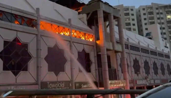 کراچی: شاپنگ سینٹر میں آگ پر قابو پالیا گیا، 150 دکانیں متاثر