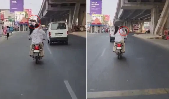 بیوی نے چلتی بائیک پر شوہر کی چپل سے پٹائی کردی؛ ویڈیو وائرل